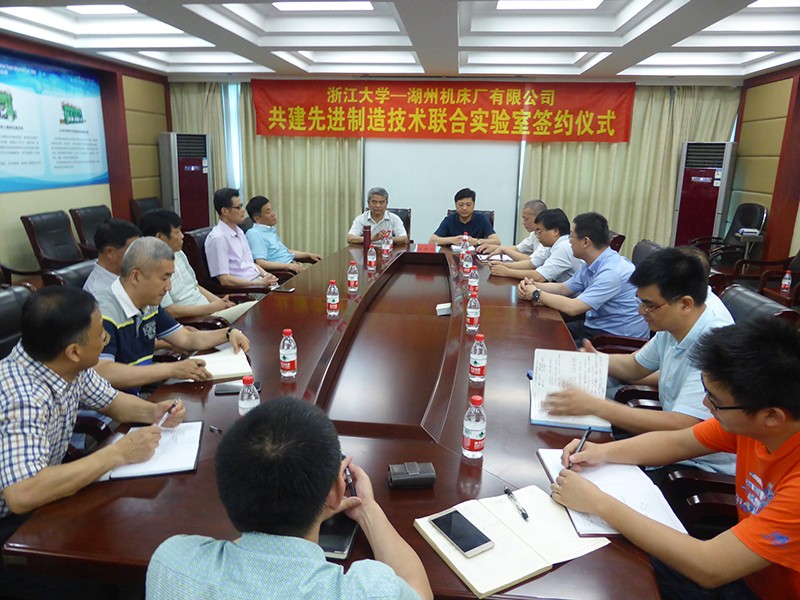 在湖州市被列入“中國(guó)制造2025”試點(diǎn)示范城市及召開動(dòng)員大會(huì)后,湖州機(jī)床廠有限公司立即行動(dòng)起來(lái),薛鋒董事長(zhǎng)第一時(shí)間對(duì)大會(huì)精神進(jìn)行傳達(dá)貫徹,同時(shí)結(jié)合本公司正在開展的產(chǎn)品轉(zhuǎn)型升級(jí)、高端裝備智能制造規(guī)劃,前往浙江大學(xué)與浙江大學(xué)機(jī)械工程學(xué)院設(shè)計(jì)工程及自動(dòng)化研究所譚建榮院士團(tuán)隊(duì)進(jìn)行面對(duì)面洽談。雙方一拍即合,決定合作建立“浙江大學(xué)—湖州機(jī)床廠有限公司液壓裝備創(chuàng)新設(shè)計(jì)與智能制造聯(lián)合實(shí)驗(yàn)室。